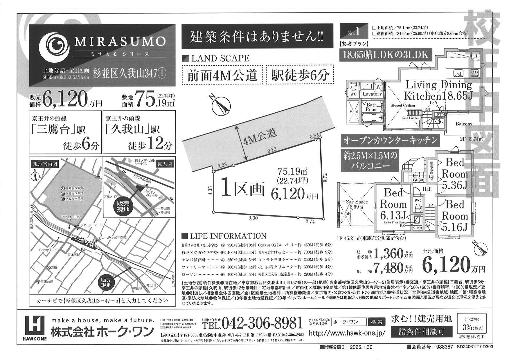 ホークワン府中 杉並区久我山347土地